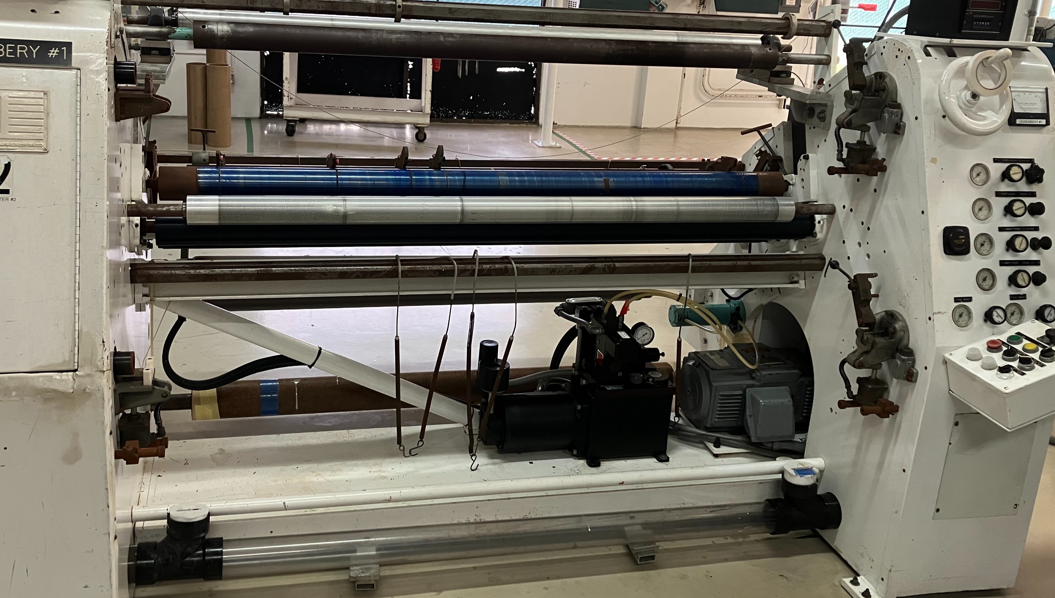 62 inch Dusenbery model 635 slitter rewinder.